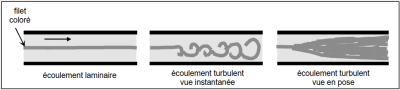 Les expériences réalisées par Reynolds en 1883 sur l'écoulement d'un fluide dans une conduite cylindrique rectiligne ont montré l'existence de deux régimes d'écoulement : laminaire et turbulent.