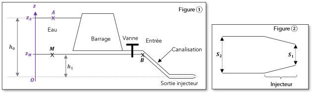 L'eau d'un lac artificiel, retenue par un barrage de montagne, alimente une centrale hydroélectrique située à la sortie d'une canalisation (figure 1 ci-dessous).