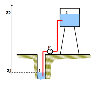 \(\large P_\mathrm{h}=q_\mathrm{V}\times \Big( \ \rho\times g\times \left( z_\mathrm{B}-z_\mathrm{A} \right) +\Delta P \ \Big)\)